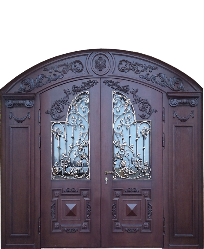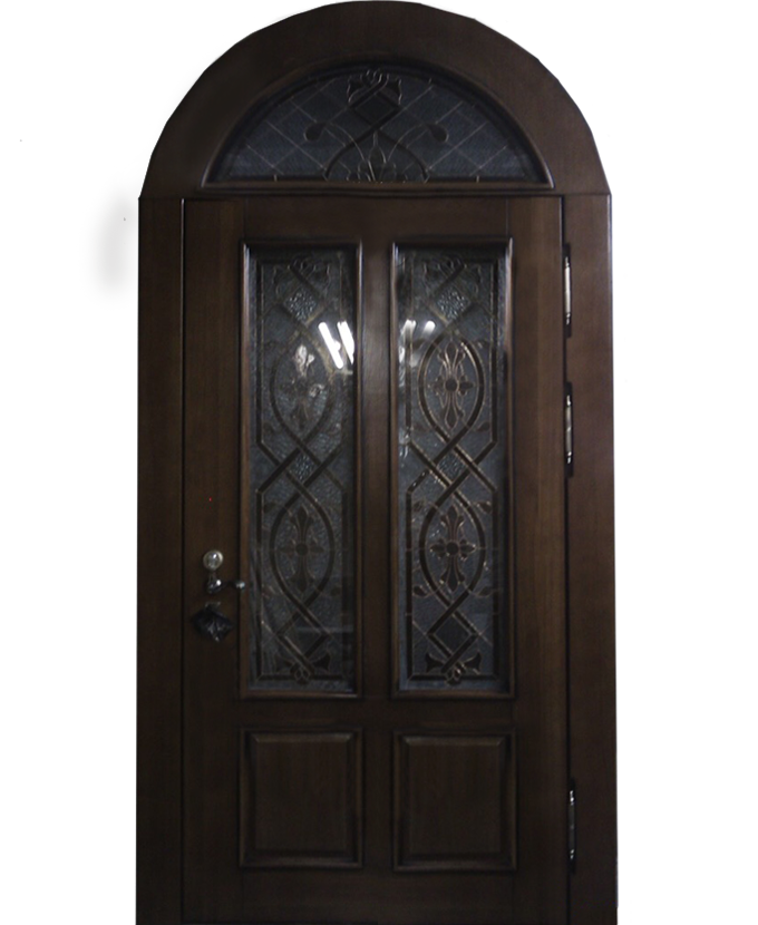 Входные арочные двери по внешней отделке